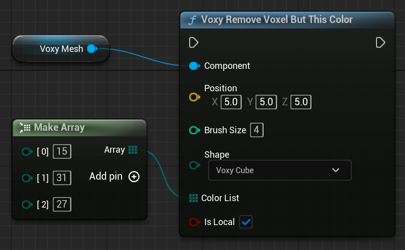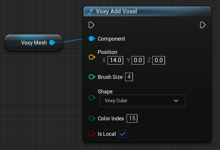 UVoxyMeshComponent* ComponentFVector Positionint BrushSizeEVoxyShapeType::Type Shapeuint8 ColorIndexbool IsLocal